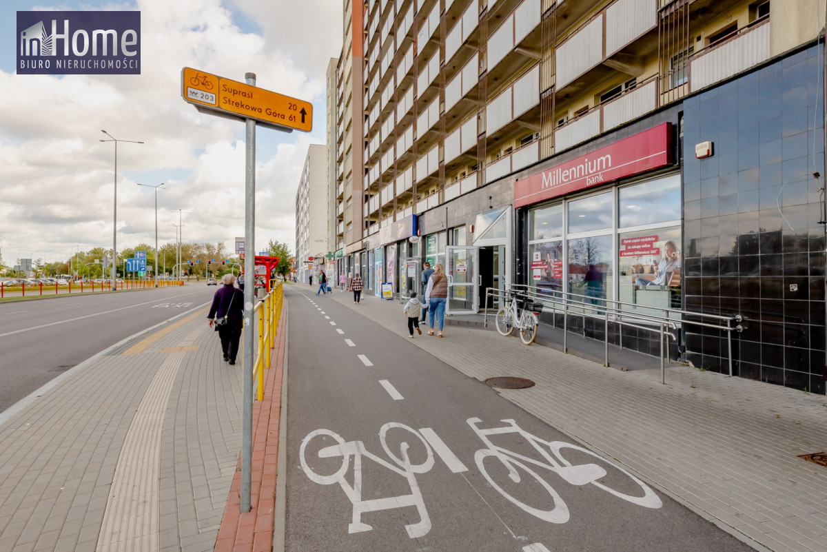 Do wynajęcia lokal handlowo-usługowy o powierzchni 100 m², położony na parterze budynku w rejonie centrum przesiadkowego PKS i PKP w Białymstoku. Lokal posiada bezpośrednie wejście z chodnika od ul. Monte Cassino, co zapewnia dobrą widoczność i łatwy dostęp dla klientów.Duże, przeszklone witryny od strony ulicy umożliwiają umieszczenie czytelnej reklamy. Lokal usytuowany jest przy intensywnych ciągach komunikacyjnych - zarówno pieszych, jak i samochodowych.