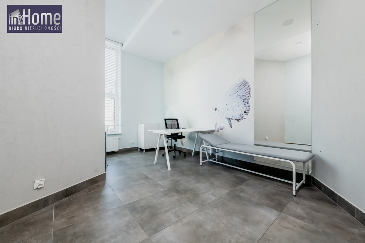 Lokal o wysokości ok. 3 m, jasny i dobrze doświetlony, zaprojektowany z myślą o działalności usługowej, szczególnie medycznej, kosmetycznej, terapeutycznej lub biurowej.